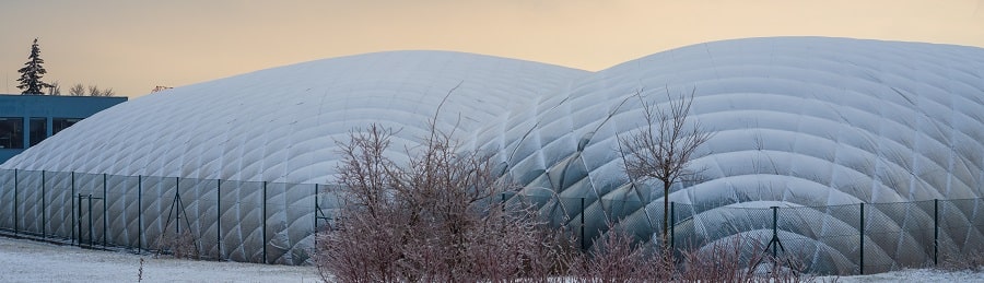 Pneumatyczne hale namiotowe są rozwiązaniem stosowanym wtedy, kiedy zależy nam na kontroli temperatury i wilgotności naszej hali. Możemy skutecznie regulować te parametry dzięki doskonałej  izolacji, którą zapewnia zastosowanie specjalnego dachu. Wykonuje się go z dwóch warstw materiałów plandekowych PVC zgrzanych ze sobą po obwodzie. Pomiędzy tymi warstwami znajduje się powietrze, którego ciśnienie regulujemy za pomocą pompy. Taka implementacja pozwala na doskonałą izolację i kontrolę warunków wewnętrznych przez cały rok. By jednak użytkowanie naszej hali pneumatycznej było bezproblemowe przez wiele sezonów, musimy wykorzystać właściwe materiały do jej pokrycia.