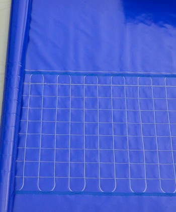 1. zbrojenie plandeki dwiema galwanizowanymi linkami stalowymi, o grubsości 1 mm, w izolacji PVC,